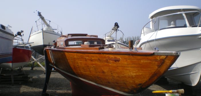 - Coque : acajou vernie rivetée sur membrures en acacia