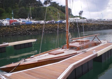 - Gréement : mât, bôme et tangon d’origine en spruce.