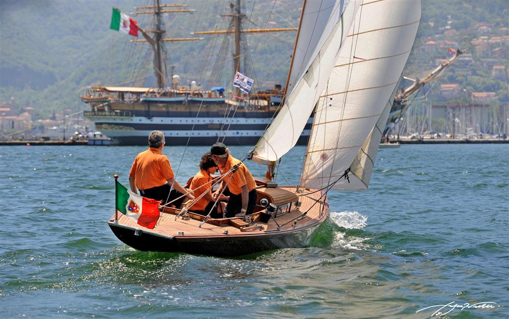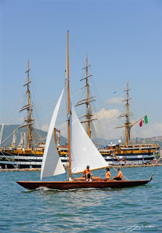 Commentaire : ancien Requin nommé Shark en bois mahogany, restauré en 2011. Participation à nombreuses régates de voiliers d’époque en Italie. Vainqueur de plusieurs régates en Italie, sur le lac de Come et dans le golfe de la Spezia.