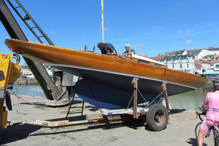 Année : 1970 Chantier : Pouvreau Coque acajou vernis vissée collée, Pont teck, Mât bois (pin d’Oregon), Bôme bois, Propriétaire actuel : E. Le Pape Port d’attache actuel : Roscanvel…