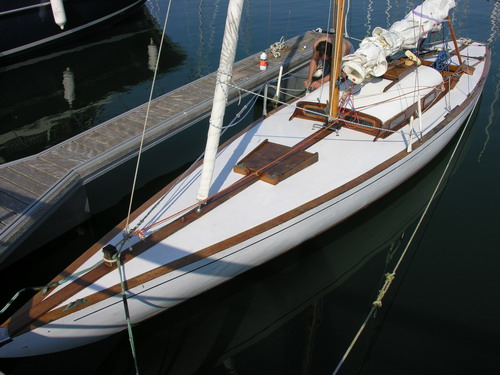 Mon habitude d’entretien a toujours été, pendant plus de 25 ans, de faire une année de gros travaux et une année d’entretien courant. Les derniers « gros travaux » étaient le remplacement des boulons de quille et réfection de la semelle. Le remplacement du pont (il était en pitchpin peint et vieillissant et je l’ai remplacé par un contreplaqué multicouche (repeint en blanc sauf les bois qui courent de l’avant à l’arrière) qui assure plus de rigidité à l’ensemble du bateau. Plus récemment (2018), le remplacement des bordées de râblure et la réfection de l’étrave et encrage d’étai.
