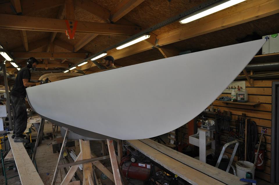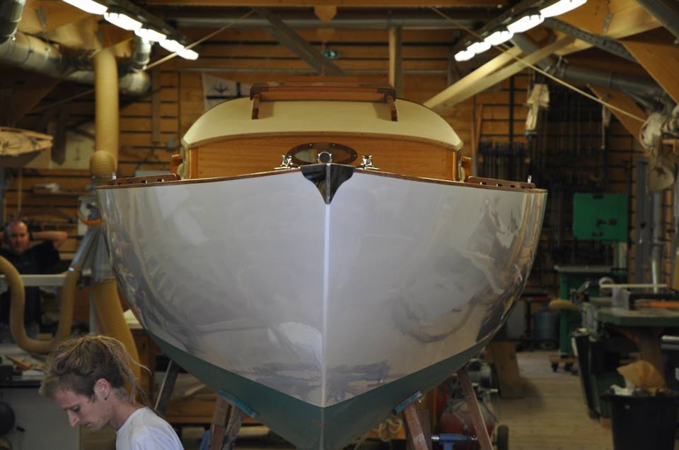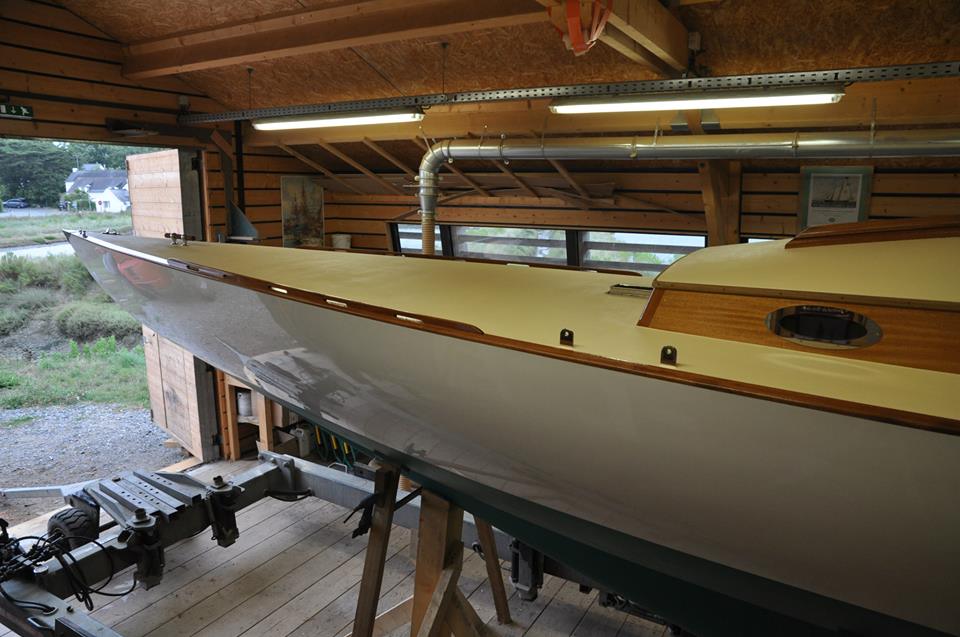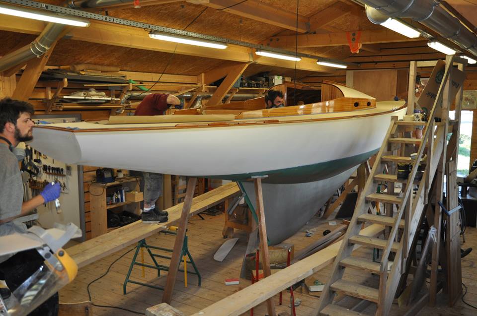 Comme le rappelait Philippe Petit-jean, au cours de la dernière AG : » Il y a quarante et un ans, en 1974, sortait du chantier Pouvreau, à Vix en Vendée Johnny III, n° 461. On ignorait qu’il allait falloir quatre décennies pour revoir la fabrication d’un nouveau Requin en bois. Quel cadeau magnifique que ce bateau construit à l’ancienne pour célébrer les 80 ans de l’A.F.P.R. »
