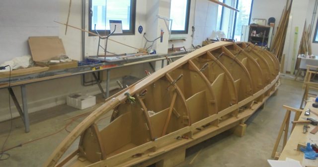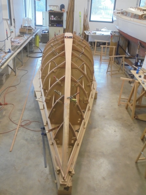 « Enfin nous allons passer à autre chose ! Les deux bauquières sont collées, la première de la fausse quille aussi, le tableau arrière, et le nez. Nous passons au délignage des lattes de bordés et la semaine prochaine, « théoriquement », nous attaquons la pose de celles ci. Deux mois et demi pour en arriver là ! Maintenant qu’on a vu, si c’était à refaire, en un mois, ça serait fait ! Mais bon… Voila, nous sommes bien contents, on ne cachera pas que nous avons un peu galéré, mais on y arrive doucement. Nous ne sommes pas des pros… ».