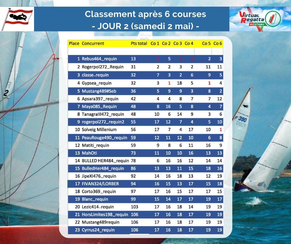 Trois nouvelles courses ont été disputées ce samedi 2 mai dans le cadre du Challenge A.F.P.R virtuel 2020, portant le nombre total de courses à six. Rebus464_requin caracole en tête et a conforté son avance. Les places suivantes sont, quant à elles, plus disputées puisque seuls 5 points séparent le deuxième Rogerpol272_Requin et Mustang489#Seb.