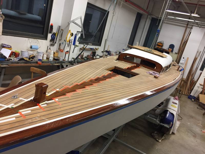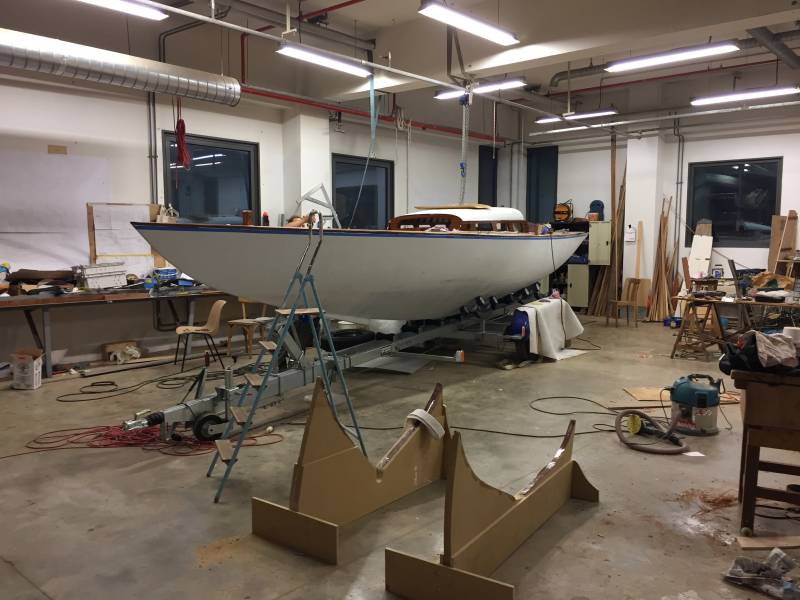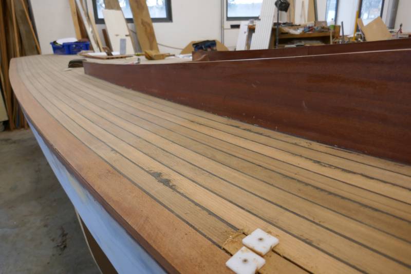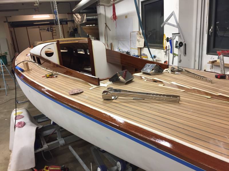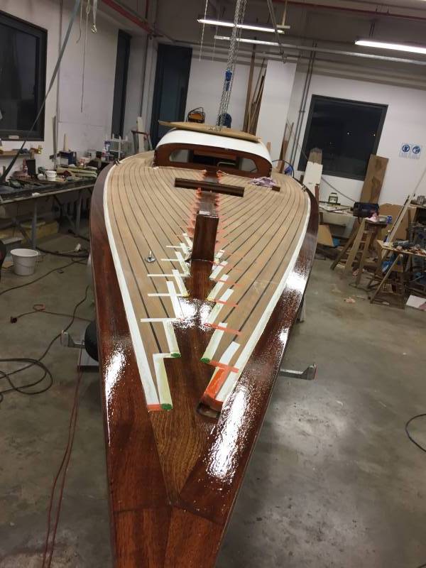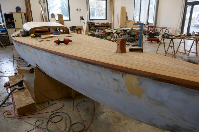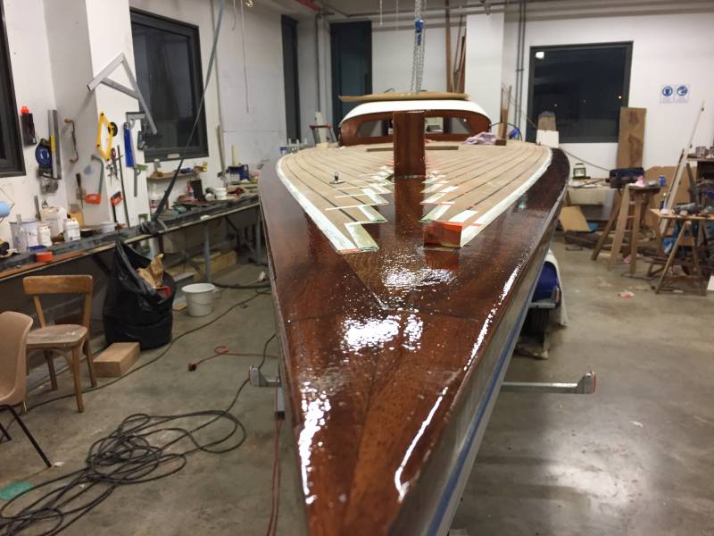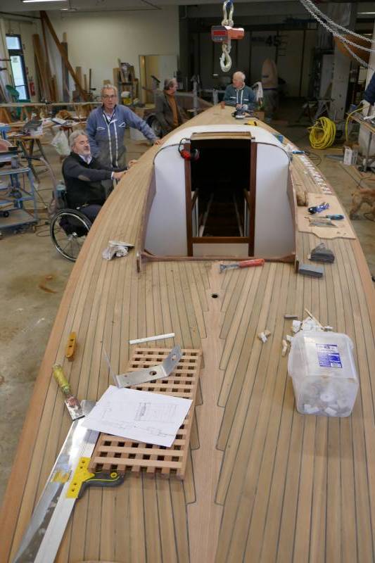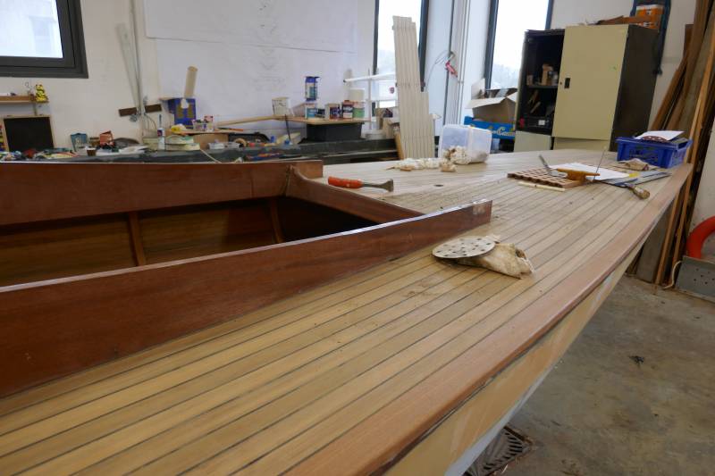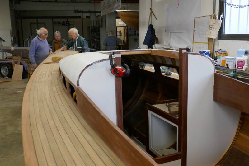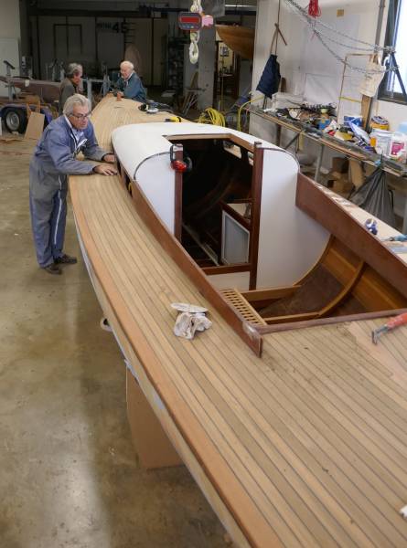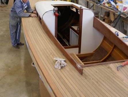 Nous sommes heureux de vous annoncer que nos amis des Vieux Safrans touchent au but ! Les dernières photos transmises nous montrent le Requin qui portera le n°499 quasi terminé. Admirez notamment le magnifique pont en teck et la qualité des finitions intérieures !