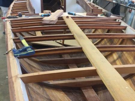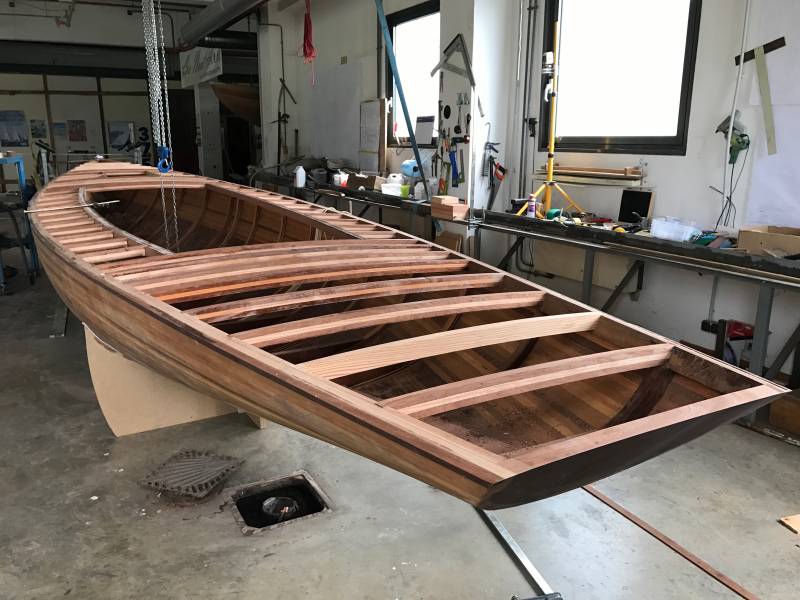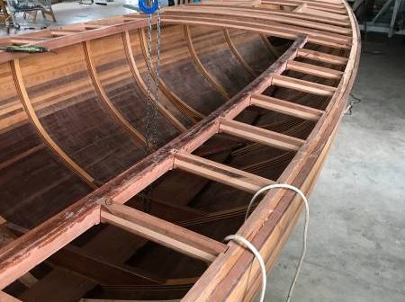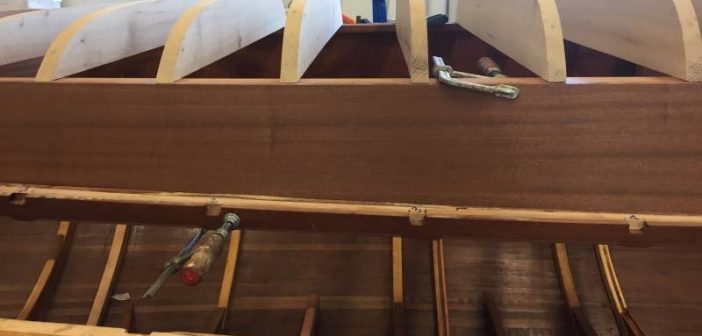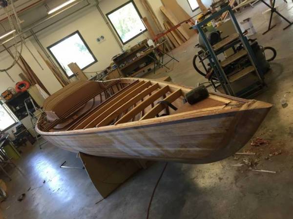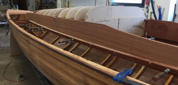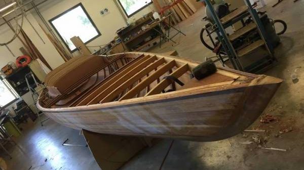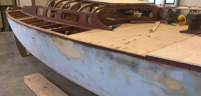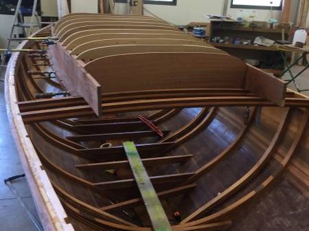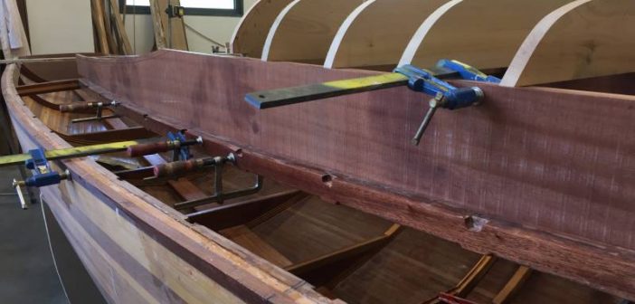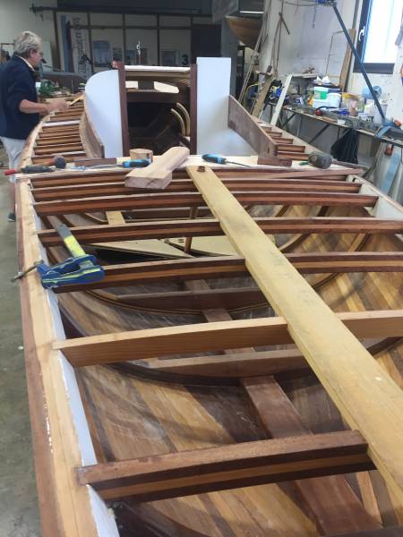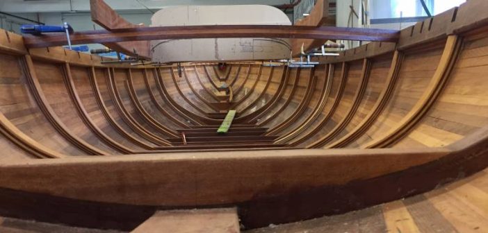 La saison d’été a été rythmée par des événements essentiellement en mer. On n’en a pas pour autant oublié ce qui se passe à terre et notamment le chantier de construction d’un Requin à Annecy avec la technique du strip-planking.