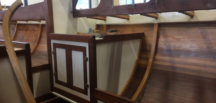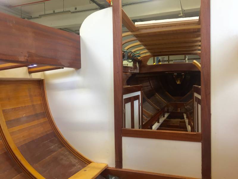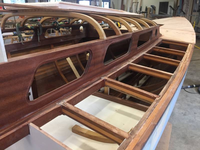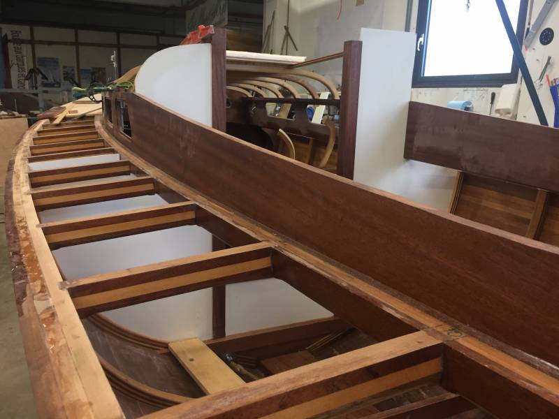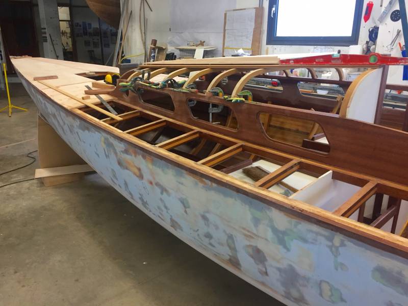 Découvrez en images les dernières évolutions du roof (qui a dû être refait trois fois !), des aménagements de la cabine et du pont. Prochaine étape, pose du pont en teck avec fougère en acajou.