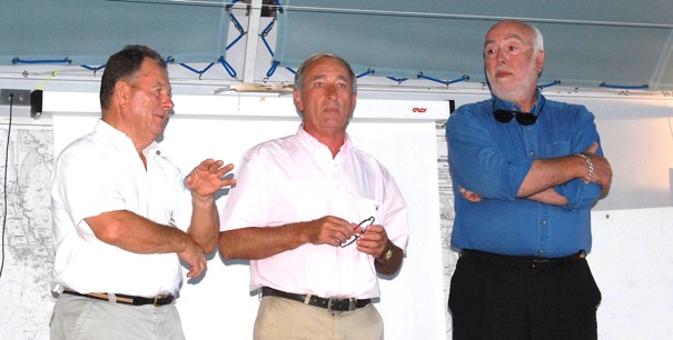 (Jean Pierre BLAVEC, Président de la SNT, Yves NORMAND, Maire de La Trinité sur Mer, Philippe PETIT-JEAN, Président de l’A.F.P.R.)