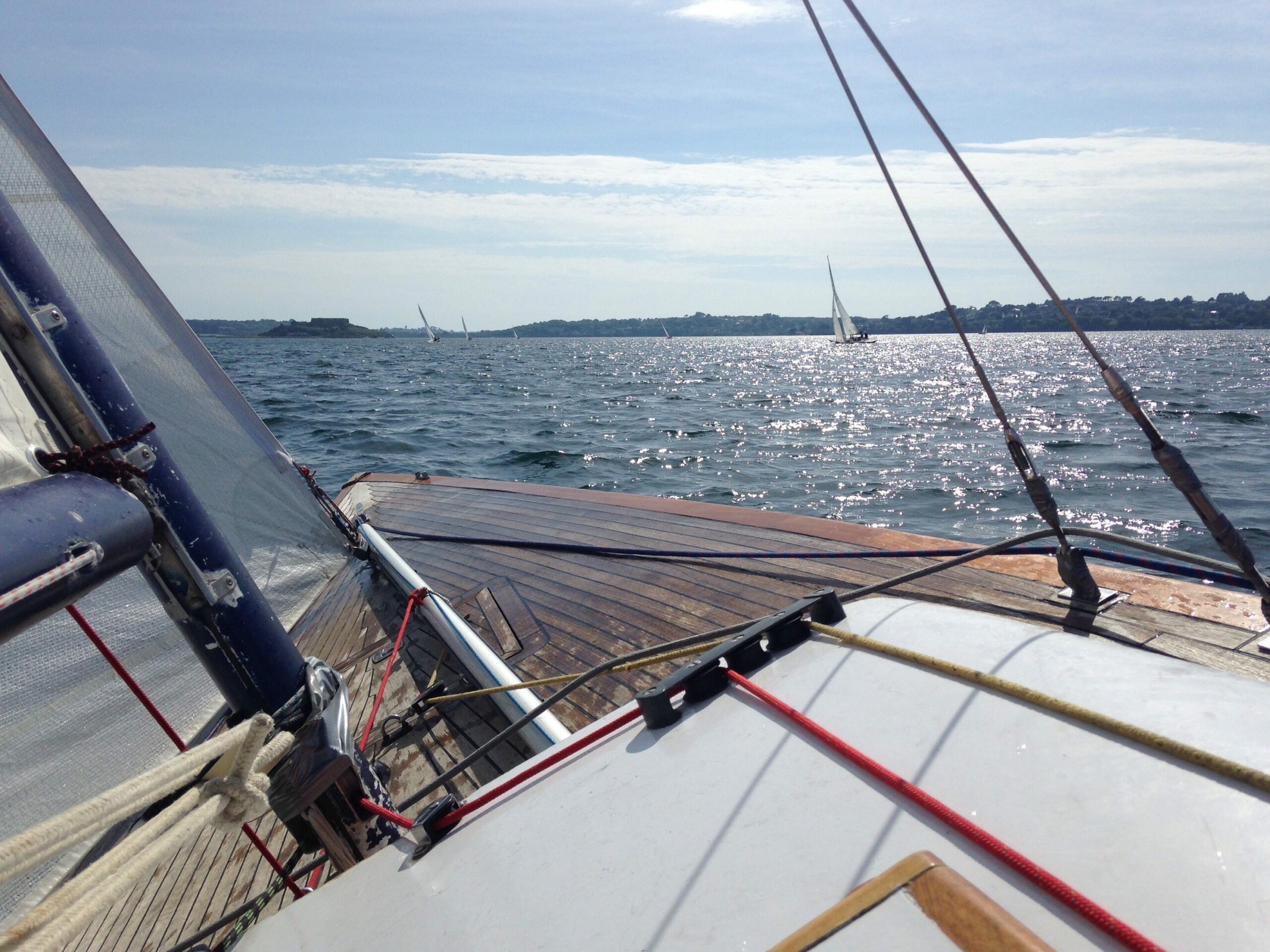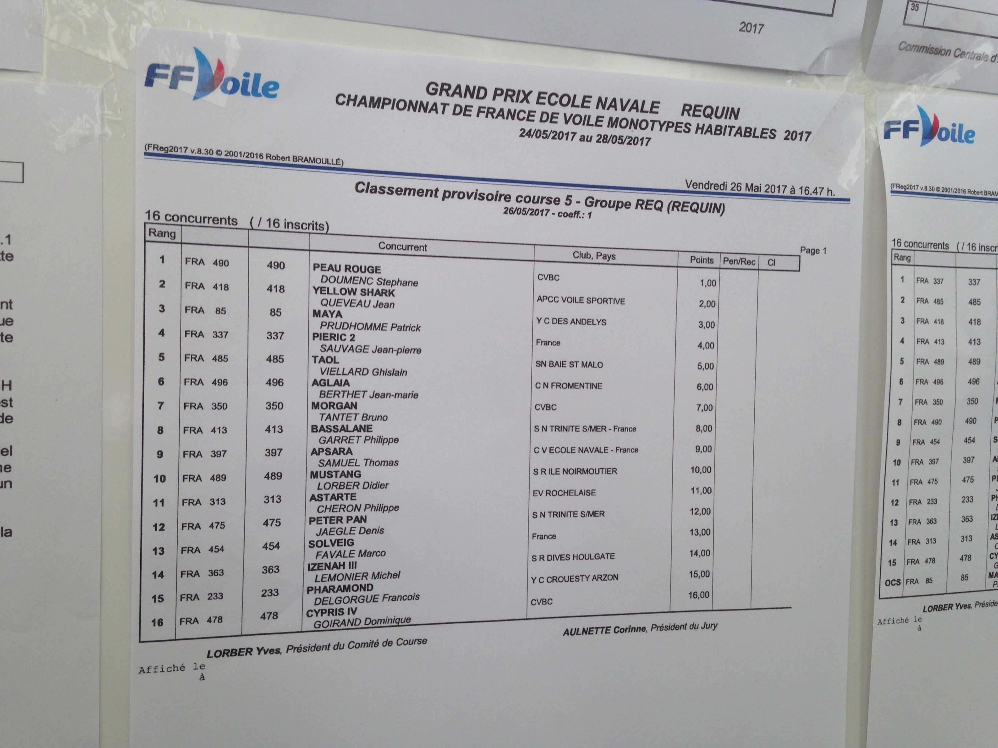 Après une longue attente, finalement deux manches courues aujourd’hui avec un bon petit vent thermique qui s’est levé vers 15h. Pour gagner aujourd’hui; il valait mieux avoir un bateau rouge puisque Peau Rouge remporte la première manche et Pieric II la seconde. A noter à propos de la 1e manche : rappel général et deuxième départ sous pavillon noir.