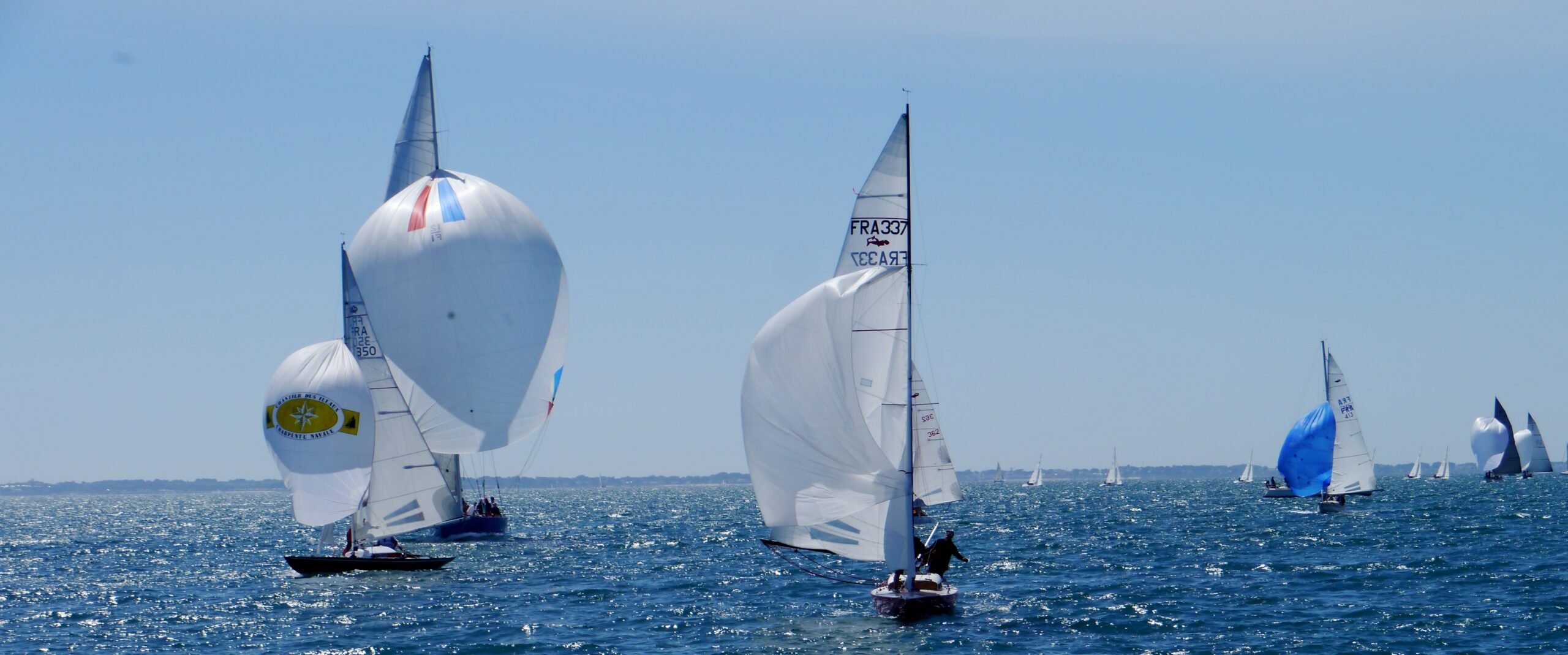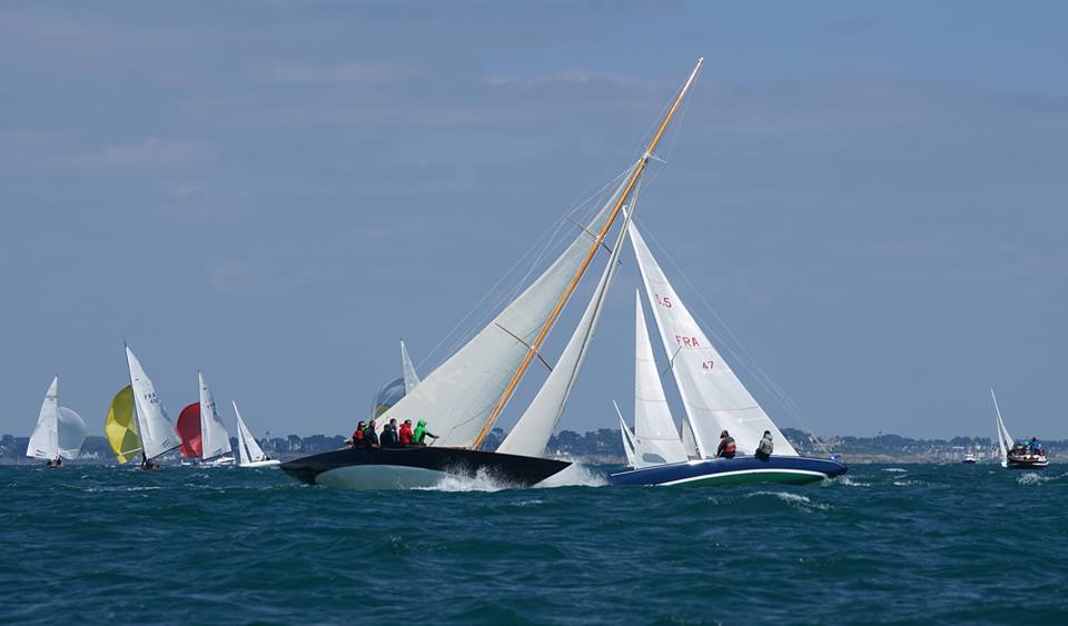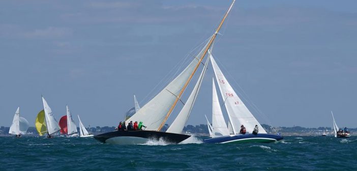 La flotte des Voiles Classiques, deuxième étape du Challenge Métrique Arthus-Bertrand, et des 7M50 a pu savourer une journée de voile comme on ne peut en vivre que dans la baie de Quiberon. Après un départ sous un ciel nuageux et dans une dizaine de nœuds de vent, le soleil a percé et le vent est monté jusqu’à 20 nœuds en fin d’après-midi, de quoi satisfaire ces amoureux de la régate. Quatre manches courues pour les 12MJI, 8MJI, 6MJI, 5.5MJI et les Requin, trois pour les 7M50, le tout sous la houlette de Gilles Bricout et des bénévoles de la Société Nautique de la Trinité-sur-Mer.