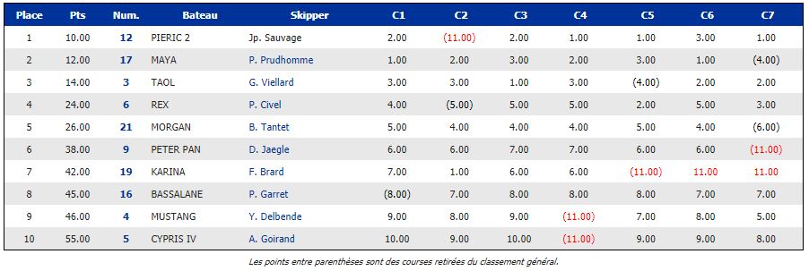 Pieric II à Jean-Pierre Sauvage confirme aujourd’hui sa première place en Requin avec deux nouvelles victoires face à ses concurrents directs : Maya à Patrick Prudhomme et Taol à Ghislain Viellard. Même si le podium se dessine, les places ne sont pas encore jouées, les écarts de points étant assez réduits. La journée de dimanche se jouera sous haute pression mais toujours dans la convivialité, à l’image de cette série réputée pour son esprit fair-play.