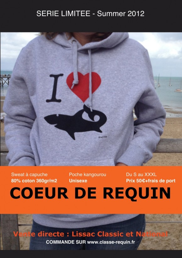 Dessiné par Sébastien Petit-Jean, le sweat Coeur de Requin est douillet, très agréable à porter, et idéal pour les retours de mer et les soirées estivales.
