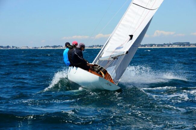 Compte-rendu Denis Jaeglé Le vendredi 12 juillet la Baie de Quiberon a accueilli pour trois jours six Requin pour les Voiles Classiques de La Trinité. Signal d’avertissement à 14h, la baie était balayée par un vent établi de 18/20 nœuds. Conditions un peu musclées pour une reprise, deux manches ont été courues et la victoire…